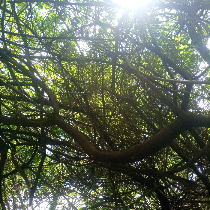 - "An upward-angle photograph captures a dense canopy of interwoven tree branches and foliage, observed within the city of Thika, Kenya" by FM-Yb8LC2, licensed under CC BY 4.0