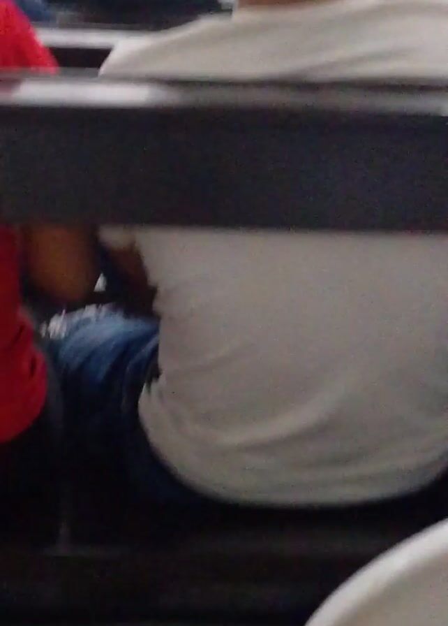 A video shot inside a church from behind, showing people sitting and praying. The focus is on the back of a head of a person in a white shirt in the middle. Behind the head is the altar with a statue of a saint and other religious iconography. The video shows the scene is in a church during a service.