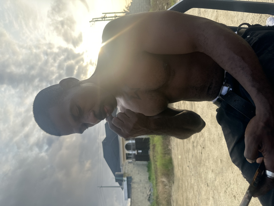 - "A dark-skinned male, shirtless with a muscular physique, a mustache, and a small hoop earring in his left ear, is depicted in an outdoor setting in Langbasa, Nigeria" by FM-ddIDX2, licensed under CC BY 4.0