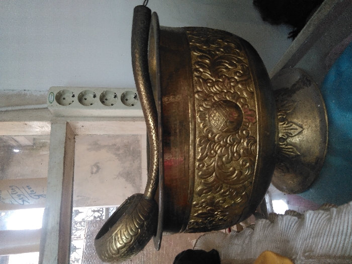- "This image captures an interior scene within the city of Ghent, Belgium, showcasing an ornate brass bowl with a matching brass ladle" by FM-9dzTh2, licensed under CC BY 4.0