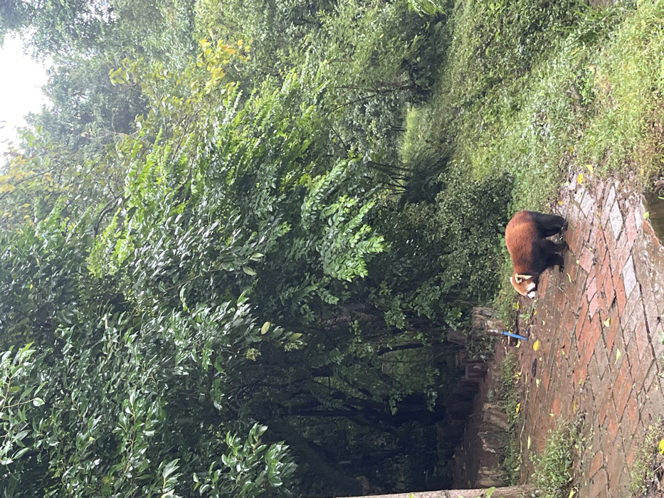 - "A red panda stands on a wet, reddish-brown brick pathway within a densely vegetated outdoor enclosure at the Chengdu Research Base of Giant Panda Breeding in Chengdu, China" by FM-VYYYD2, licensed under CC BY 4.0