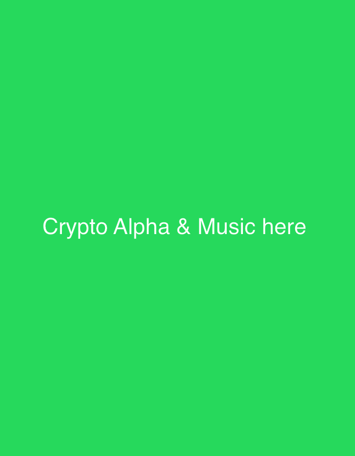 A bright green square displays the text "Crypto Alpha & Music here" in the center