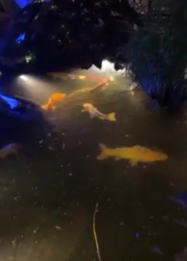 koi pond at night