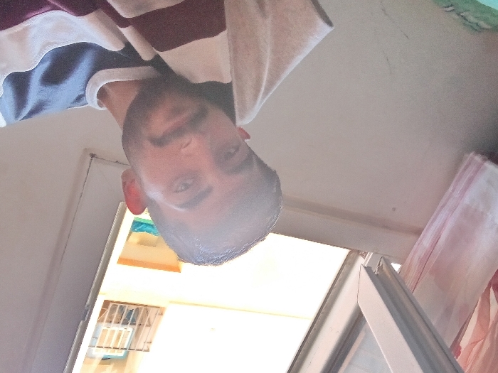 A self-portrait taken indoors depicts an adult male subject