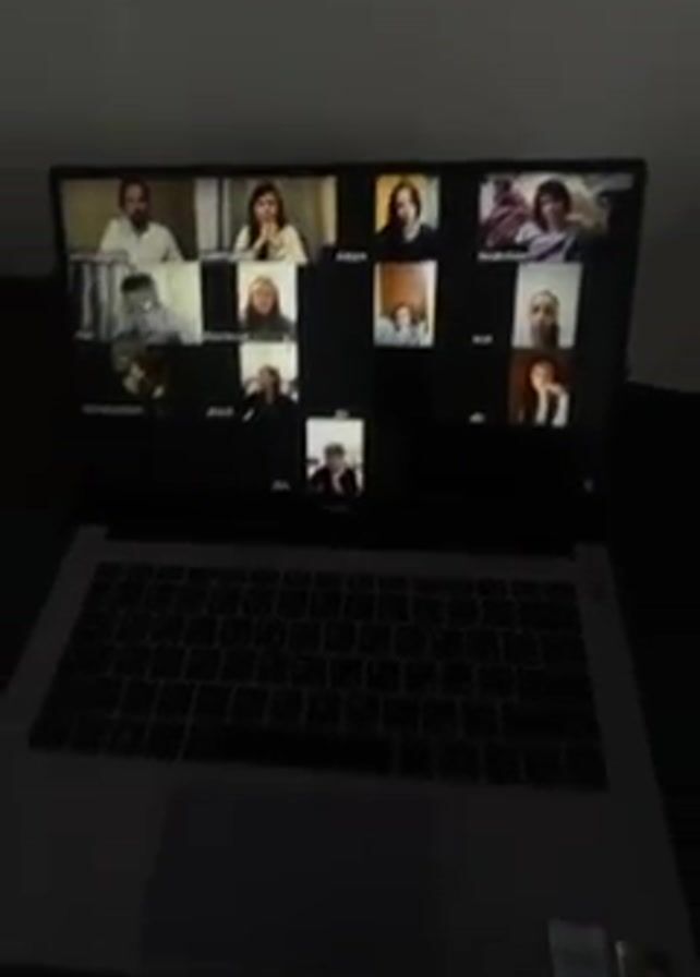 The video begins with a shot of a laptop screen displaying a Zoom meeting with several participants