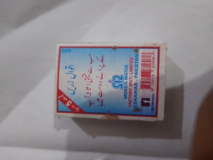 - "A single Mohsin Match matchbox is depicted, resting on a light-colored, possibly white or off-white, textured surface, likely fabric" by FM-rHWf02, licensed under CC BY 4.0