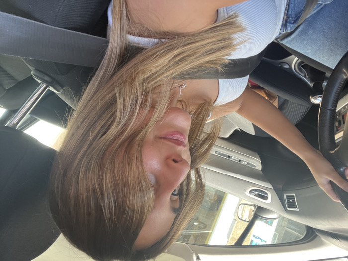 A female individual is positioned in the driver's seat of a passenger vehicle in Gondomar, Portugal