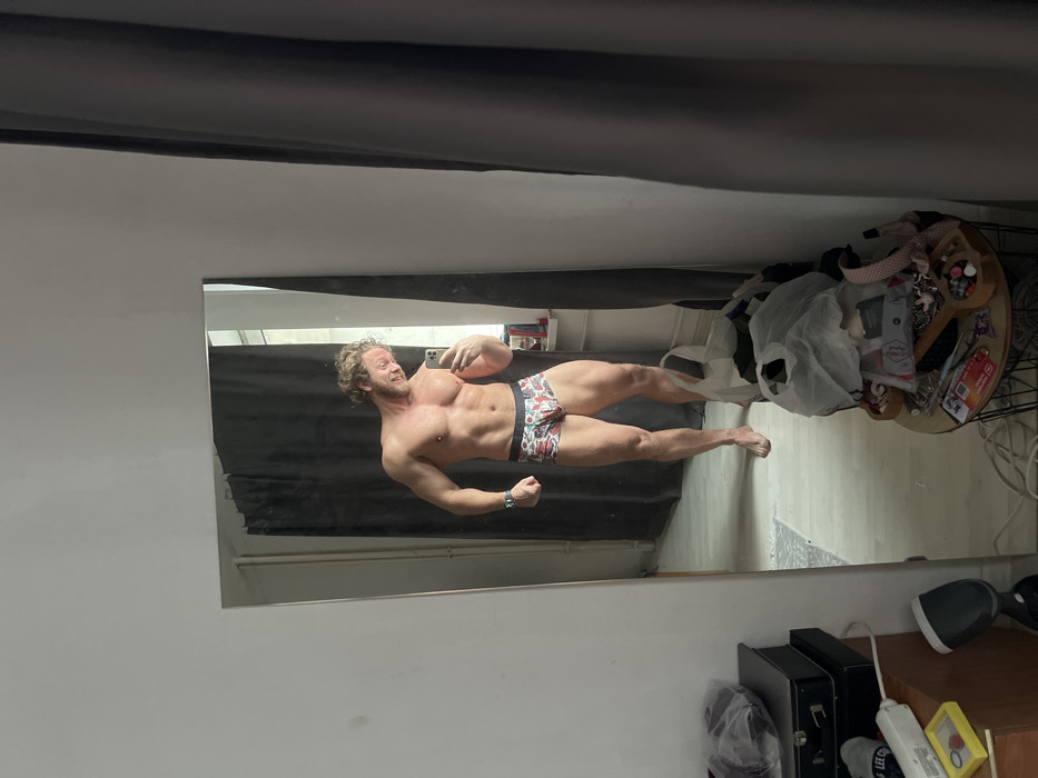 - "A male individual with a muscular physique, fair skin, and curly blonde hair is depicted in a full-body mirror selfie taken within an indoor residential setting, identified as Saint Petersburg, Russia, based on visible Cyrillic text from a Russian financial institution" by FM-6LnVy2, licensed under CC BY 4.0