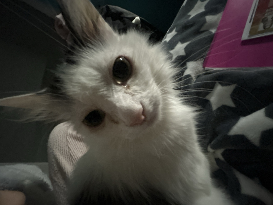 - "A close-up image features a white and gray kitten with wide, dark eyes" by FM-WxYUp2, licensed under CC BY 4.0