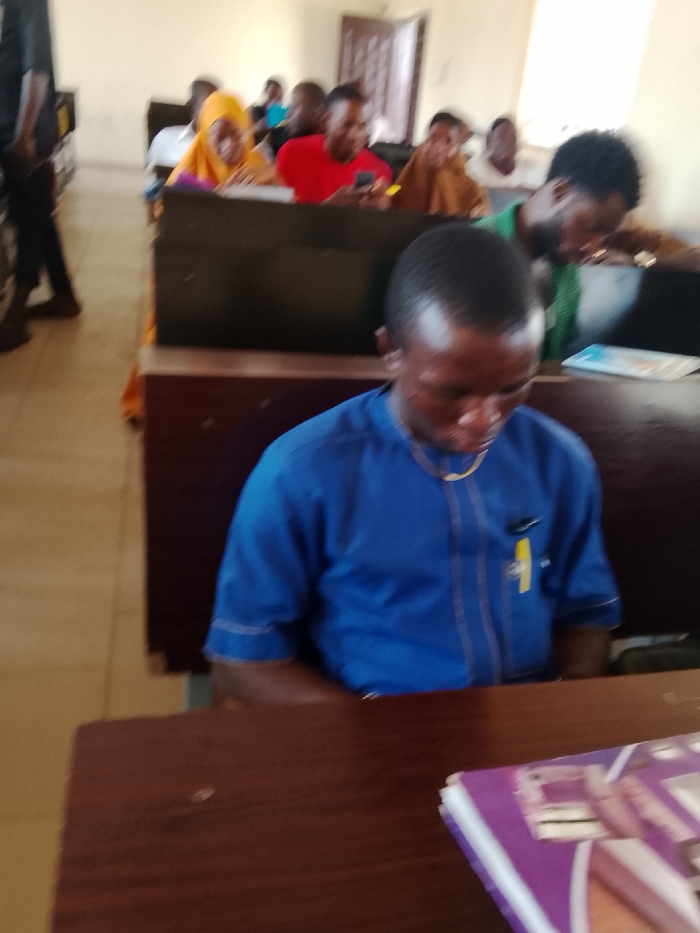This image captures an indoor scene within what appears to be a classroom or lecture hall in Akwanga, Nigeria