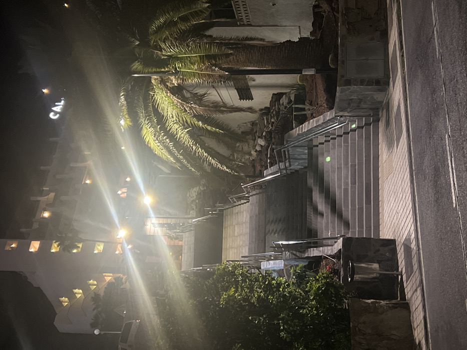 - "This nighttime image depicts an illuminated outdoor staircase leading up a hillside to a multi-story building in Mogán, Spain" by FM-33L543, licensed under CC BY 4.0