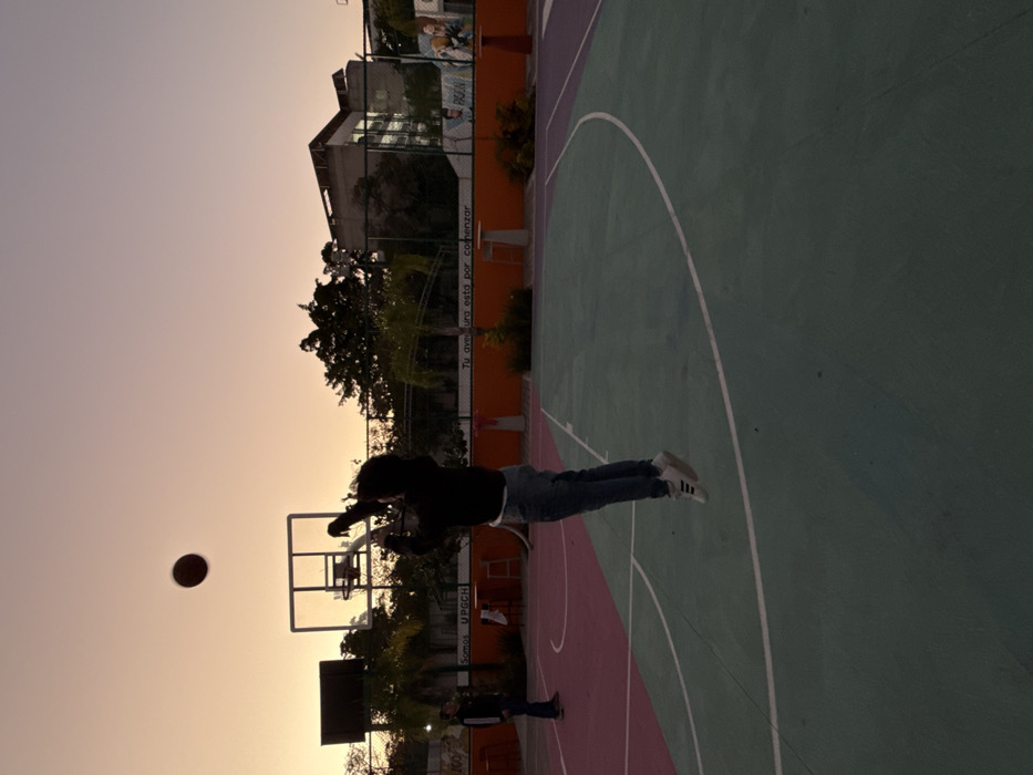 - "A person in a black jacket and jeans is throwing a basketball on an outdoor court at sunset" by FM-DzUV52, licensed under CC BY 4.0