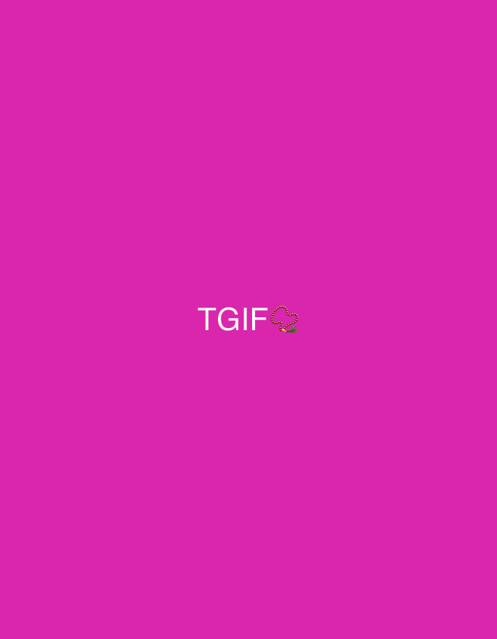 This digital graphic, located in the city of Tamaha, Nigeria, displays a solid magenta background. Centrally positioned, the white capital letters "TGIF" are visible. Immediately following this text is an emoji depicting a heart shape formed by a string of reddish-pink beads, with a small green element, resembling a leaf or charm, attached to its lower right side. No people, discernible actions, or environmental details beyond the colored background are present within the image frame.