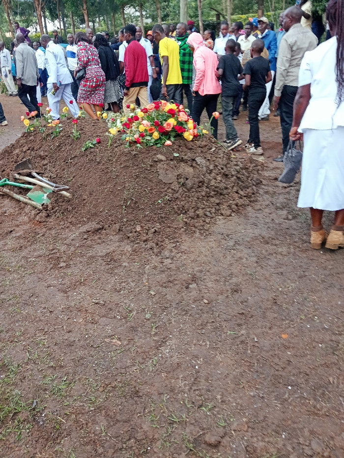 The scene depicts an outdoor burial site in Lumakanda ward, Kenya