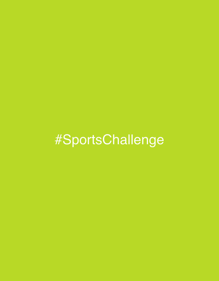 The image displays a solid lime green background with the white, sans-serif text '#SportsChallenge' centered horizontally and vertically