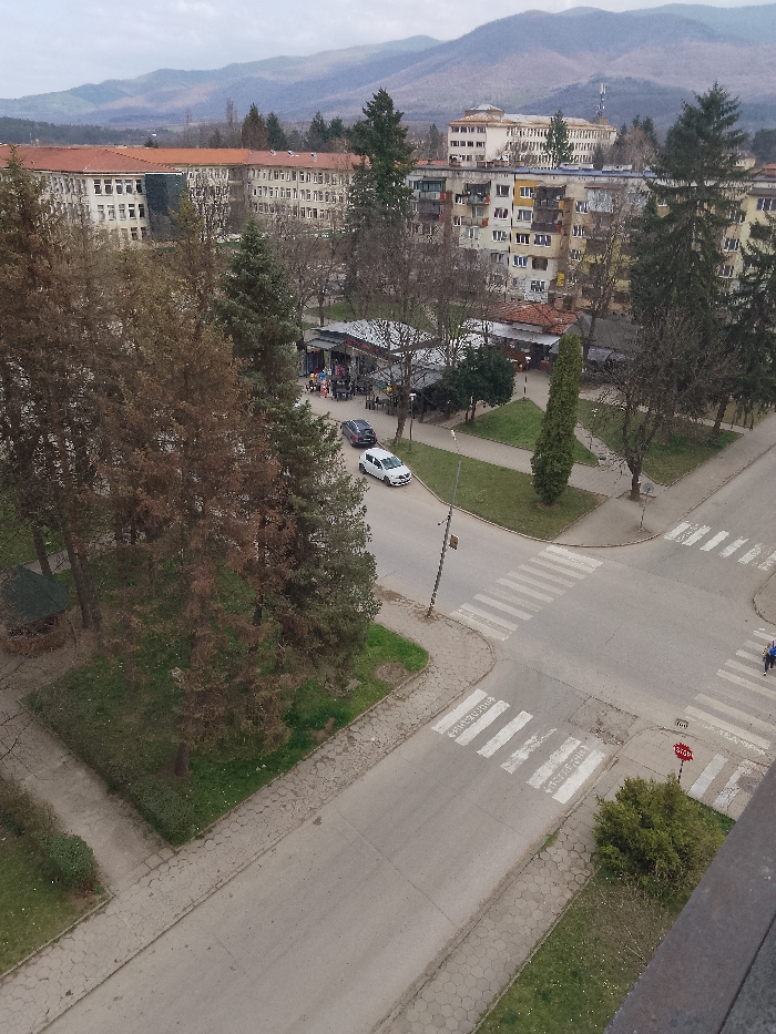 - "An elevated, wide-angle view depicts a street intersection and surrounding urban environment in Botevgrad, Bulgaria, under an overcast sky" by FM-pkvc73, licensed under CC BY 4.0