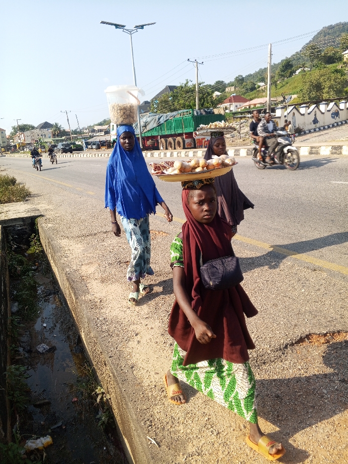 The image depicts a daytime street scene in Lokoja, Nigeria