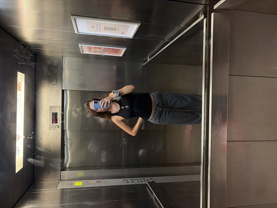 - "The scene shows a female individual taking a mirror selfie inside an elevator located in Ramat Gan, Israel" by FM-1GLuK2, licensed under CC BY 4.0
