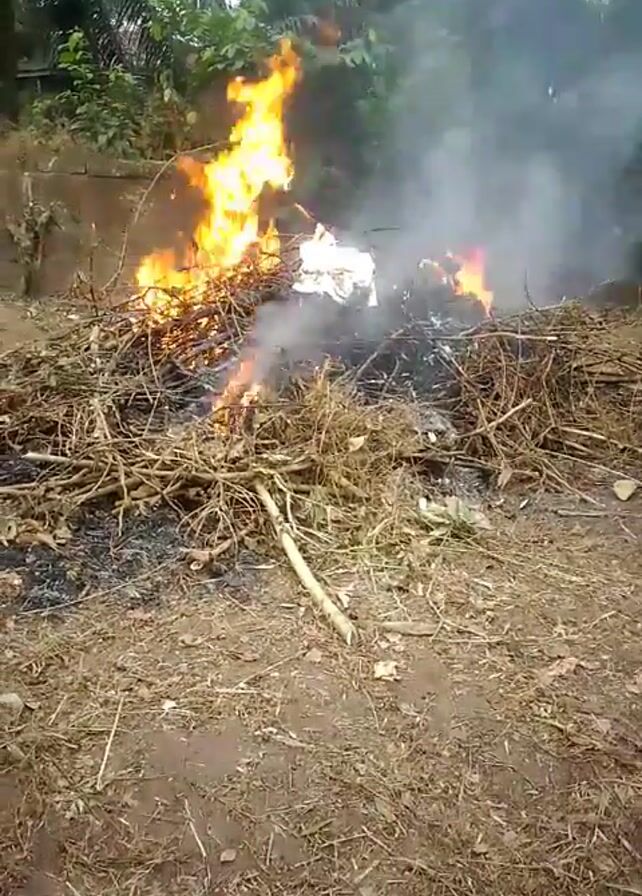 pile of brush and debris burning in an outdoor setting