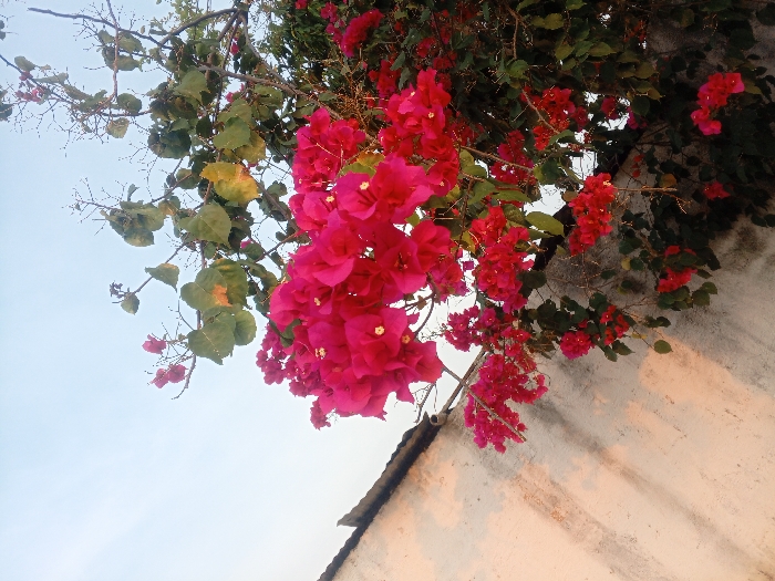 - "A vibrant cluster of bougainvillea flowers cascades down from above, exhibiting a striking magenta color" by FM-67jFM2, licensed under CC BY 4.0