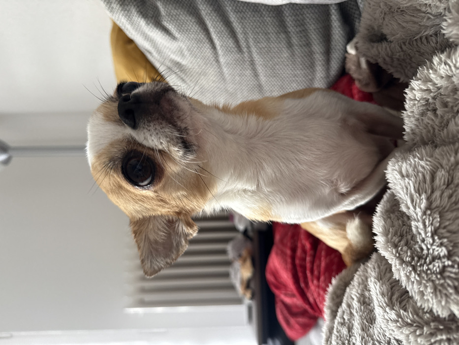 - "An indoor scene in Berlin, Germany, depicts a small, short-haired Chihuahua dog with white and tan fur" by FM-eQUGe2, licensed under CC BY 4.0