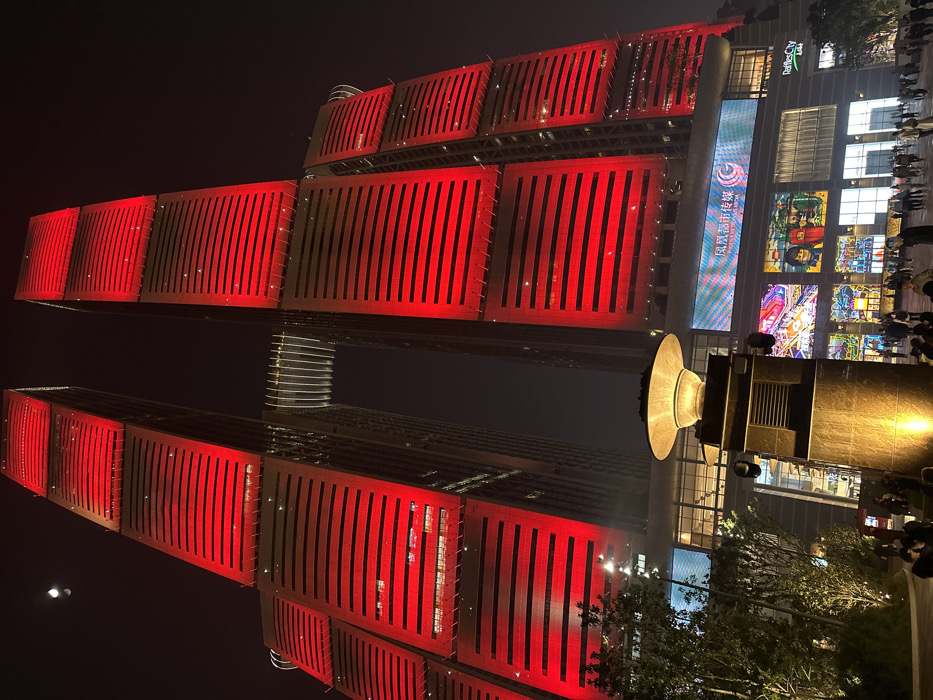 - "This image depicts the Raffles City Chongqing complex at night in Yuzhong District, Chongqing, China" by FM-W0R2w2, licensed under CC BY 4.0