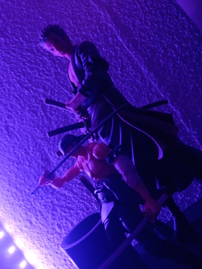 - "Two Zoro figurines are depicted against a textured purple background" by FM-nAU183, licensed under CC BY 4.0