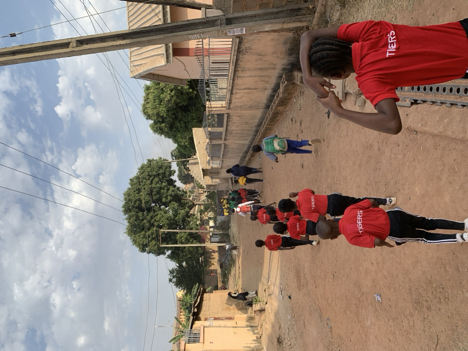 - "A group of children wearing red shirts with "Tigers" printed on the back are doing push-ups on a dirt road" by FM-ngtiz2, licensed under CC BY 4.0