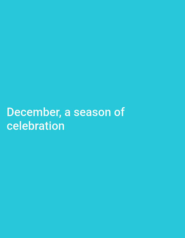 The image displays a light blue background with the text "December, a season of celebration" centered towards the bottom left