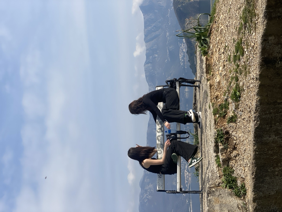- "Two individuals are seated on a white park bench at a high vantage point overlooking the Budva Bay and surrounding mountains in Budva, Montenegro" by FM-gzVUI2, licensed under CC BY 4.0