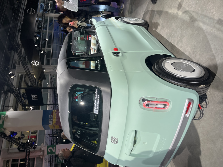 - "The image displays a light mint green Fiat Topolino quadricycle, viewed from its rear-left quarter, exhibited indoors at what appears to be the Messe Zürich exhibition center during a car show in Zurich, Switzerland" by FM-eWTi73, licensed under CC BY 4.0