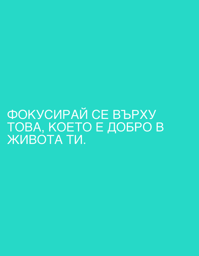 A light blue background features white text in Bulgarian, which translates to "Focus on what is good in your life