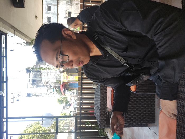 man sitting at a table outside a cafe in Jember, Indonesia