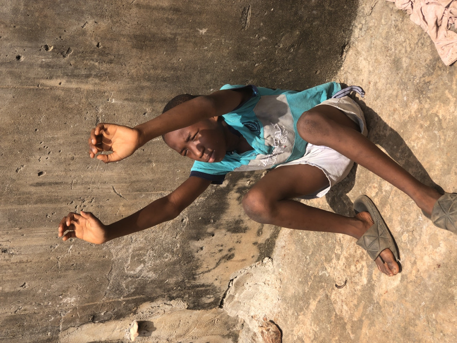 - "A young male child is seated on the ground, leaning against a textured concrete wall under bright sunlight in Nkwelle, Nigeria" by FM-vpNng1, licensed under CC BY 4.0