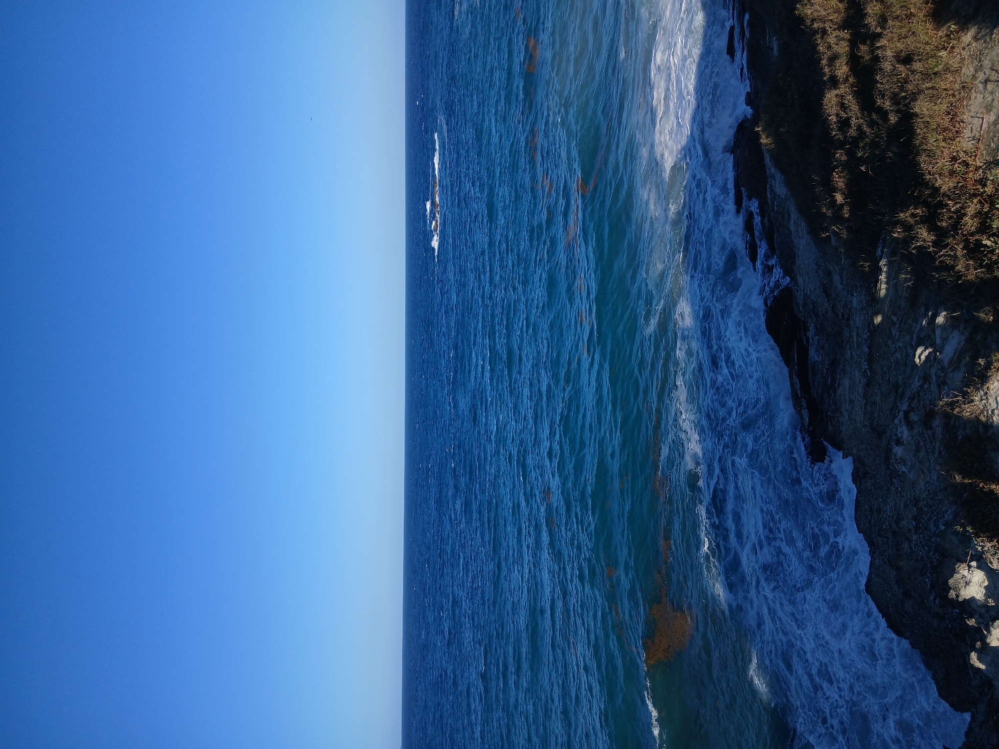 - "A vertical shot shows the ocean meeting a rocky coastline under a clear blue sky, likely taken near Playa Parguito, Venezuela" by FM-UzSbf1, licensed under CC BY 4.0