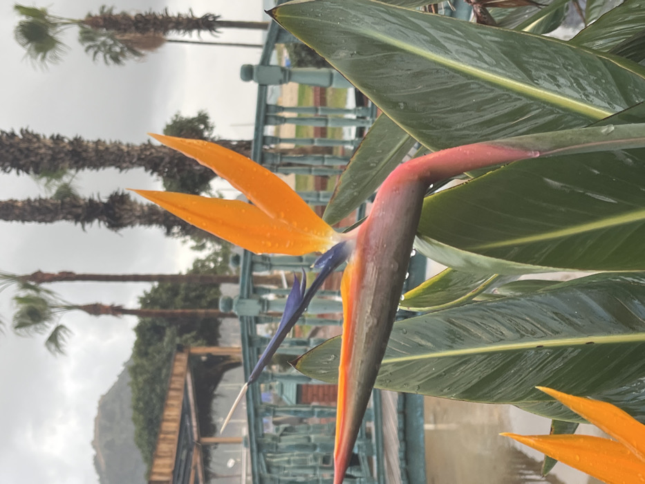 - "The image displays a close-up of a Bird of Paradise (Strelitzia reginae) flower and its foliage, heavily laden with water droplets, indicating a recent or ongoing rain event" by FM-0Shlm1, licensed under CC BY 4.0