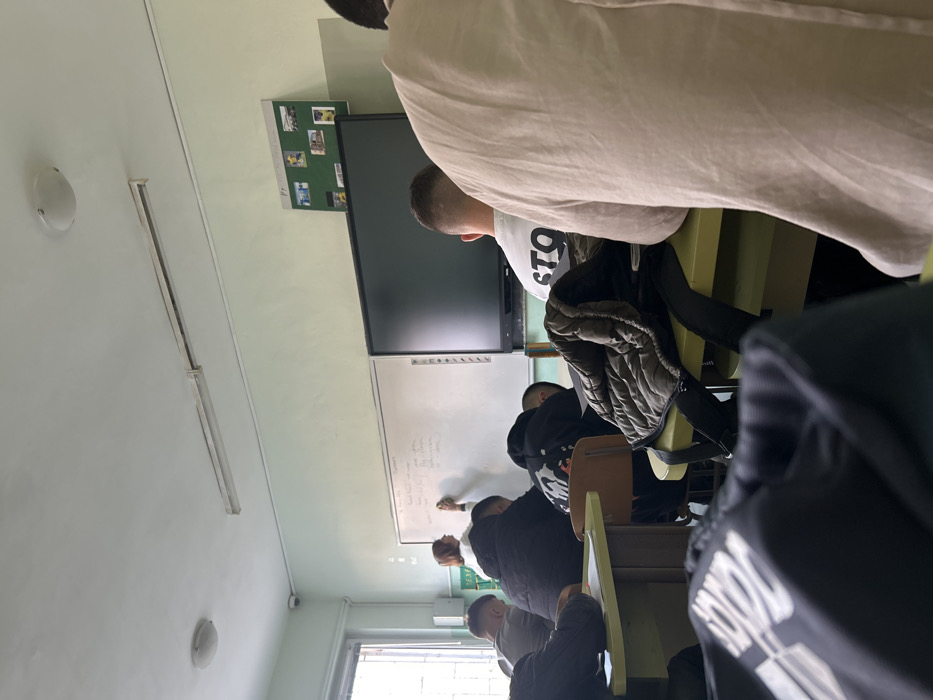 The image displays an indoor classroom scene within an educational facility in Sliven, Bulgaria