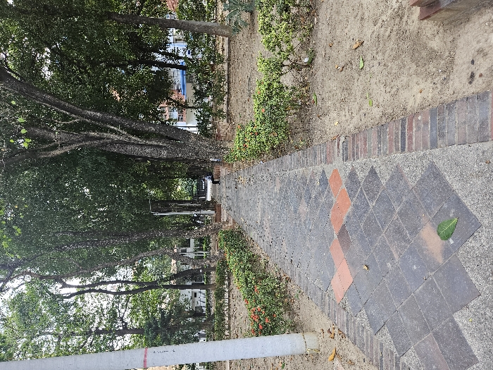 - "A brick path leads into a park, lined by trees and greenery on both sides" by FM-p8buz2, licensed under CC BY 4.0