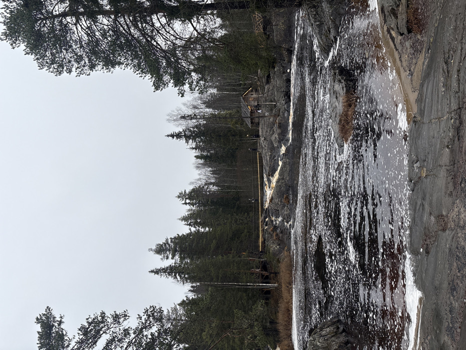 The image displays a cold, natural landscape in Unknown, Russia, under an overcast grey sky