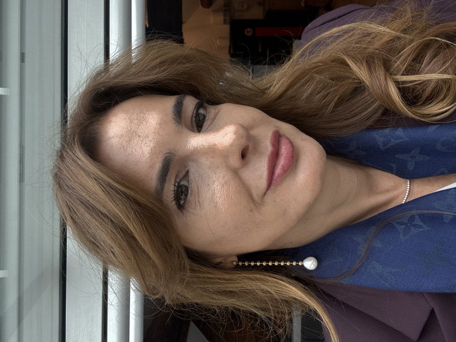 A close-up portrait depicts an adult female positioned indoors in the city of Unknown, Unknown
