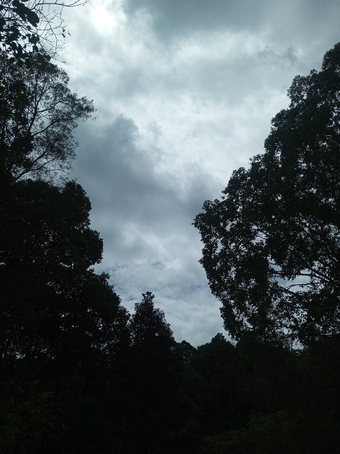- "The image depicts an upward view of an overcast sky framed by dense tree canopies, located in the city of Kanand, India" by FM-KHihw2, licensed under CC BY 4.0
