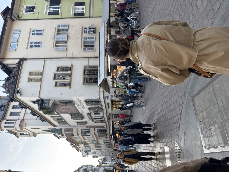 - "The image depicts a bustling cobblestone street in Bolzano, Italy, characterized by historical architecture under soft, possibly late afternoon or overcast, lighting" by FM-yfpiR2, licensed under CC BY 4.0