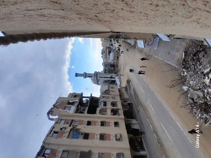 - "An elevated view captures a damaged street in Khan Yunis, Palestinian Territory, beneath a sky with mixed clouds and blue patches" by FM-V8KrL2, licensed under CC BY 4.0