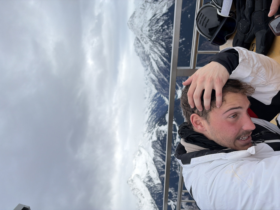 - "The image presents an elevated outdoor scene in Finkenberg, Austria, featuring a male individual and ski equipment against a panoramic backdrop of extensive snow-covered mountains under a heavy, overcast grey sky" by FM-OzlZ32, licensed under CC BY 4.0