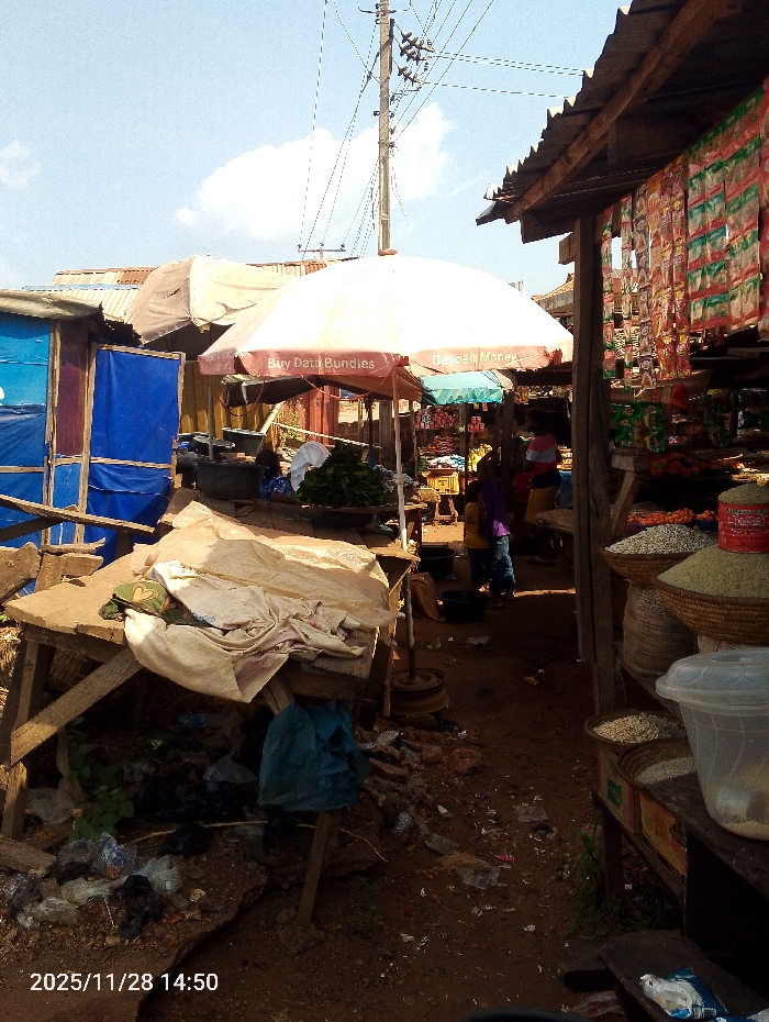 - "This image depicts an outdoor market scene in Okura, Nigeria, captured on 2025/11/28 at 14:50" by FM-7YWfh1, licensed under CC BY 4.0