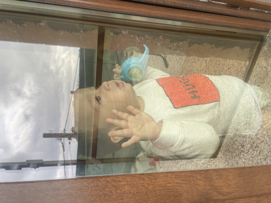 - "A toddler is observed from an interior viewpoint, positioned against a window pane in Sofia, Bulgaria, looking outwards on an overcast day" by FM-HNGng2, licensed under CC BY 4.0
