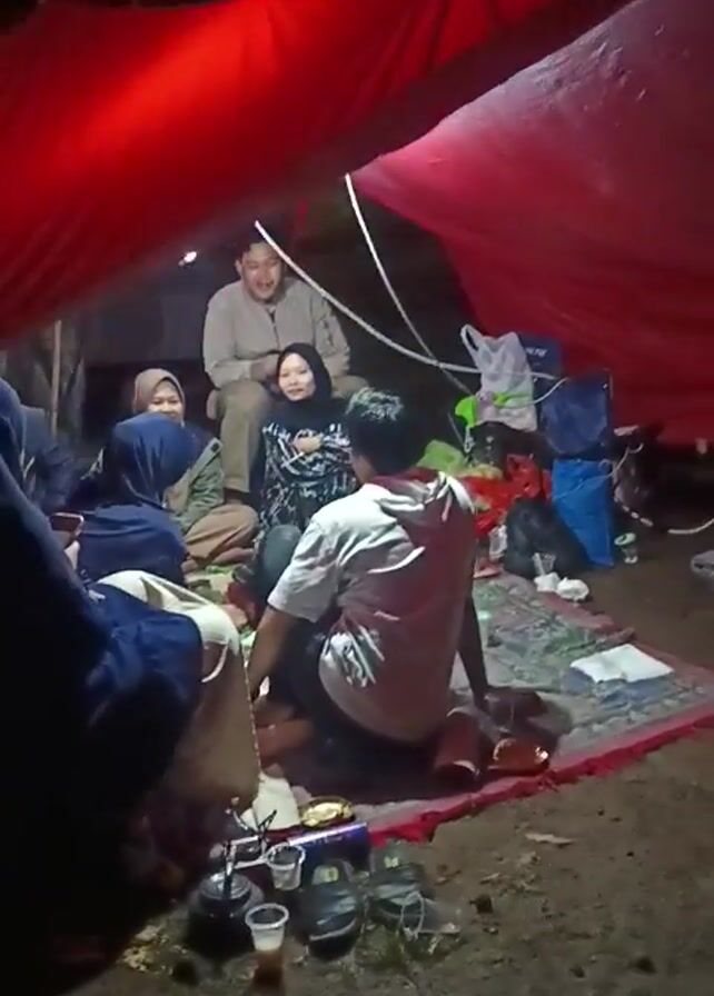 - "Inside a red-tented shelter, a group of people are gathered" by FM-WRTkH2, licensed under CC BY 4.0