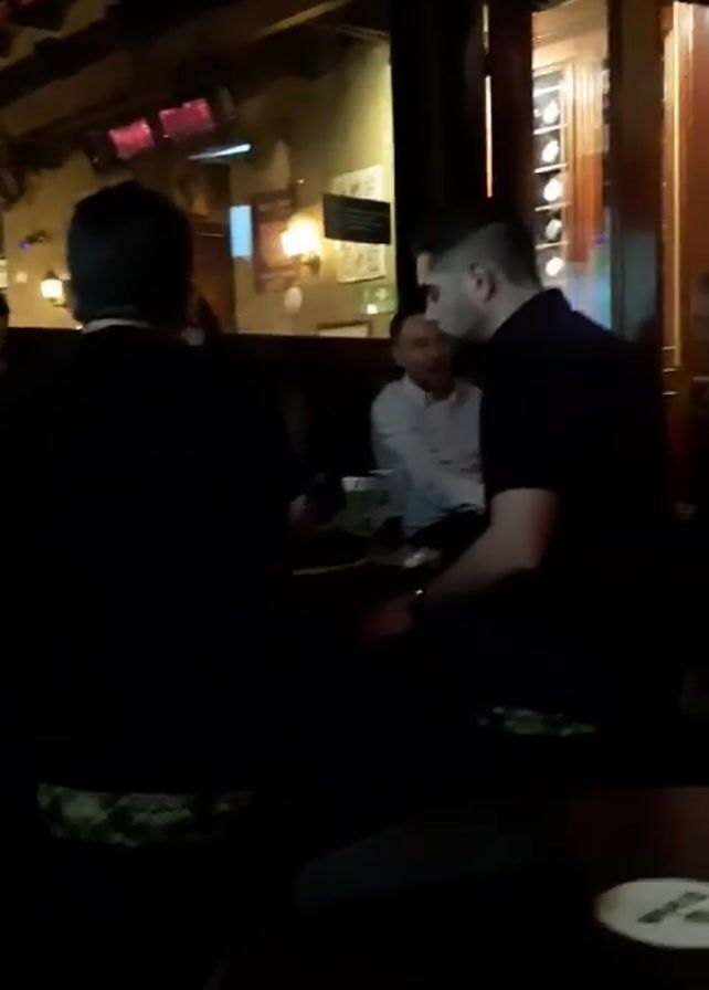 dimly lit pub interior. Several people are sitting at tables, engaged in conversation. A bartender is behind the bar, preparing drinks and attending to the patrons. The walls are decorated with framed pictures and a round mirror. The pub has a warm, traditional atmosphere.