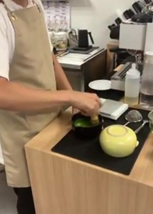 - "A person in a tan apron is preparing matcha" by FM-wUaYc2, licensed under CC BY 4.0