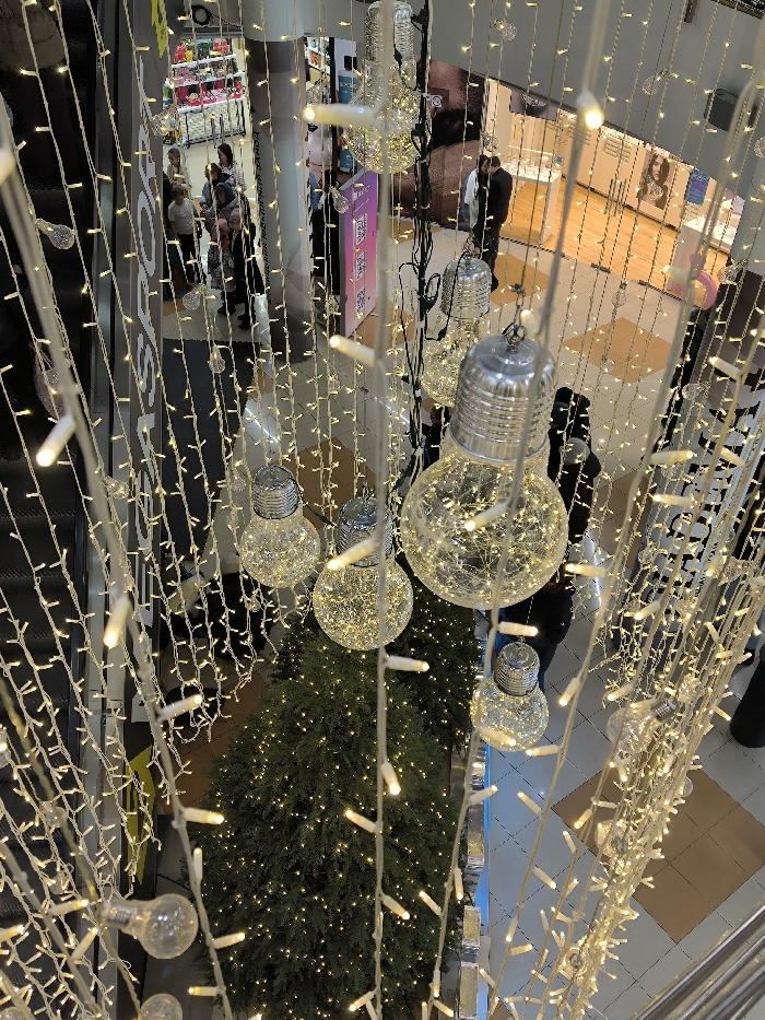 - "The image depicts an overhead view within a multi-story shopping center in Vinnytsia, Ukraine, decorated with extensive festive lighting" by FM-dWhzM2, licensed under CC BY 4.0